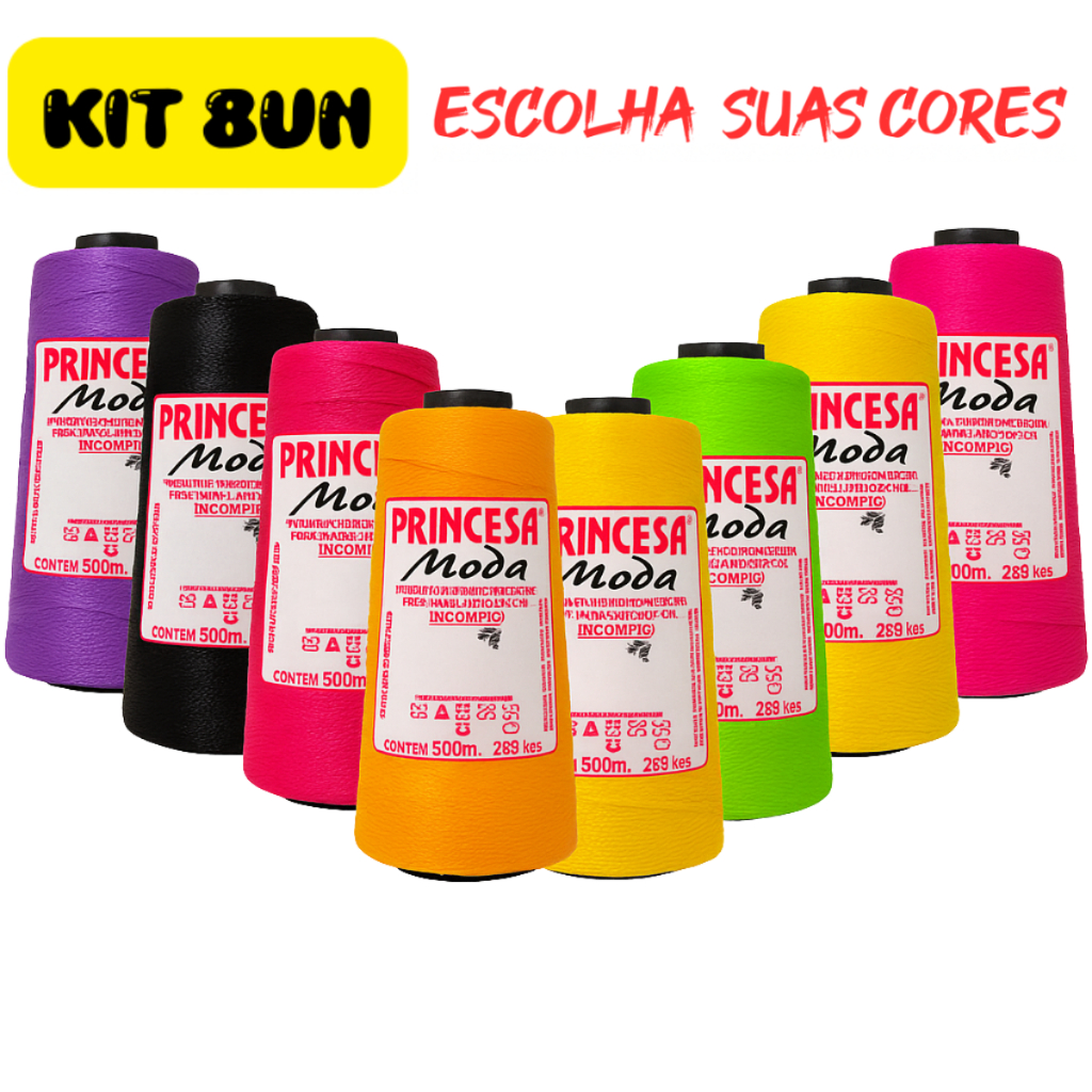 Kit 8 Linha Princesa Moda 500m Fio Acetinado 288 TEX Incomfio Trança Afro Crochê Tricô Bordado DIY
