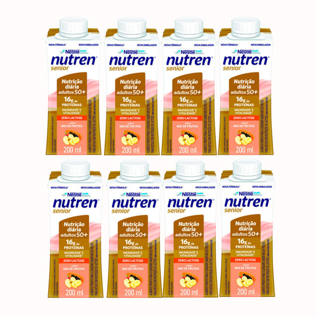 Kit 8 Nutren Senior Zero Lactose Sabor Mix de Frutas com 16g de Proteínas 200ml