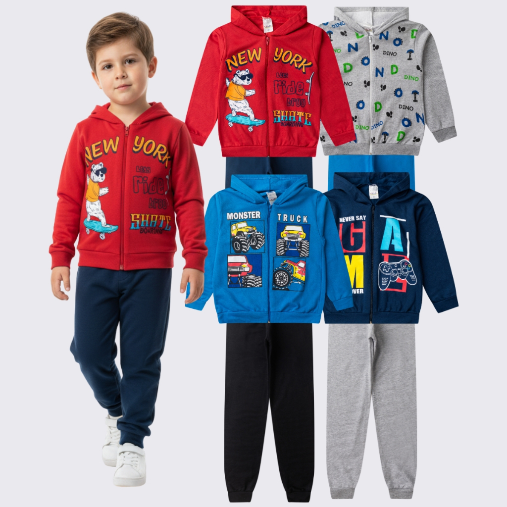 Kit 8 Peças 4 Conjunto Moletom Ziper Menino Inverno Masculino Frio Roupa Infantil
