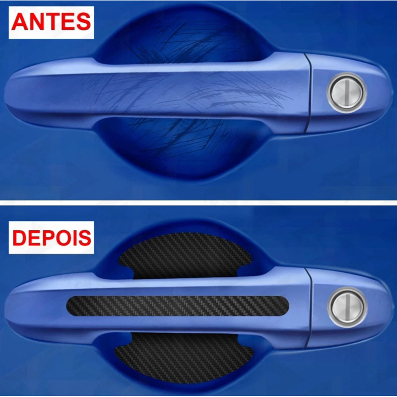 Kit 8 Peças Adesivo Protetor Maçaneta de Porta Efeito Fibra de Carbono Carro Anti Arranhões