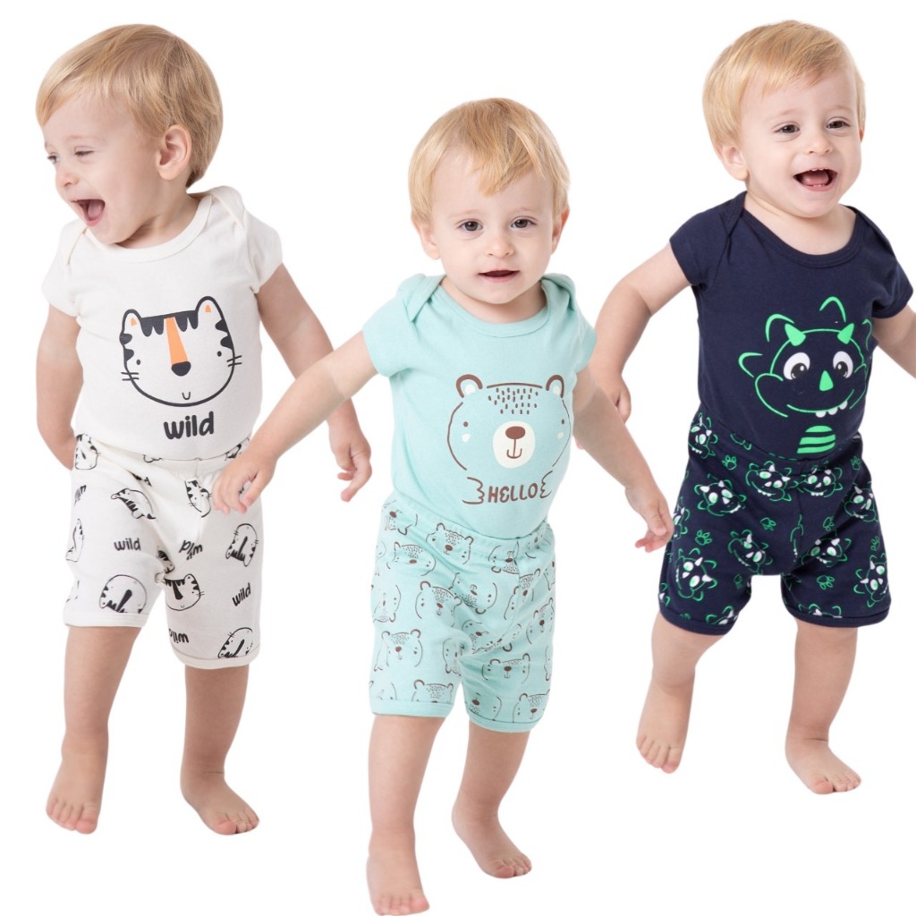 Kit body 8 peças Composto por: Body manga curta, produzido em suedini e ribana algodão 85%, estampa em silk , abertura entre as pernas e botões de pressão, para facilitar a Troca de Fraldas, Tecido Super leve e confortável para nossas crianças. Kit composto por 8 peças 4 body e 4 shorts/tapa fralda = 4 conjuntos DÚVIDAS FREQUENTES: POSSO ESCOLHER TAMANHOS VARIADOS? Nosso kit já está pronto e armazenado. Será enviado no TAMANHO SELECIONADO , portanto atenção na hora da compra para selecionar o tamanho que deseja. POSSO ESCOLHER AS ESTAMPAS ? Devido a rotatividade as estampas vão SORTIDAS e SEM REPETIR! Temos mais modelos do que nas fotos, mas sempre no mesmo estilo, conforto e qualidade. QUAL TAMANHO DEVO ESCOLHER? Como cada criança tem seu biotipo, indicamos pegar uma roupa que fique confortável na criança, tirar a medida e comparar com a nossa tabela de centímetros. Assim será perfeito. P: 0 a 3 meses M: 3 a 6 meses G: 6 a 9 meses GG: 9 a 12 meses TABELA DE MEDIDAS: BODY VERÃO : COMPRIMENTO: BUSTO: P- 37cm P- 19cm M- 39cm M- 20cm G- 42cm G- 22cm GG- 44cm GG- 25cm MEDIDAS BERMUDA: COMPRIMENTO: CINTURA: P- 19cm P- 18cm M- 20cm M- 18cm G- 21cm G- 19cm GG- 25cm GG- 21cm OBSERVAÇÕES: *Pode ter variação de 1 a 2 cm dependendo do modelo e marca disponível. Estamos à disposição no campo PERGUNTAS para esclarecimento de dúvidas! Nós da MINI-ME AGUARDAMOS A SUA COMPRA :)