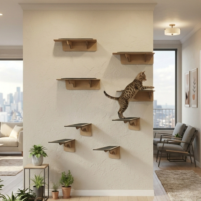 Kit 8 Peças Para Gatos 4 Prateleiras + 4 degraus Gato Parede MDF Pet Playground Suporte 10kg Montado