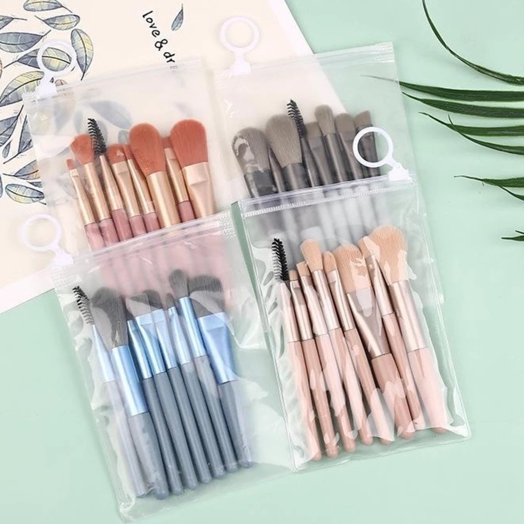 Kit 8 Pincéis de Maquiagem Mini Portátil Viagem e Bolsa - Cerdas Macias Completo