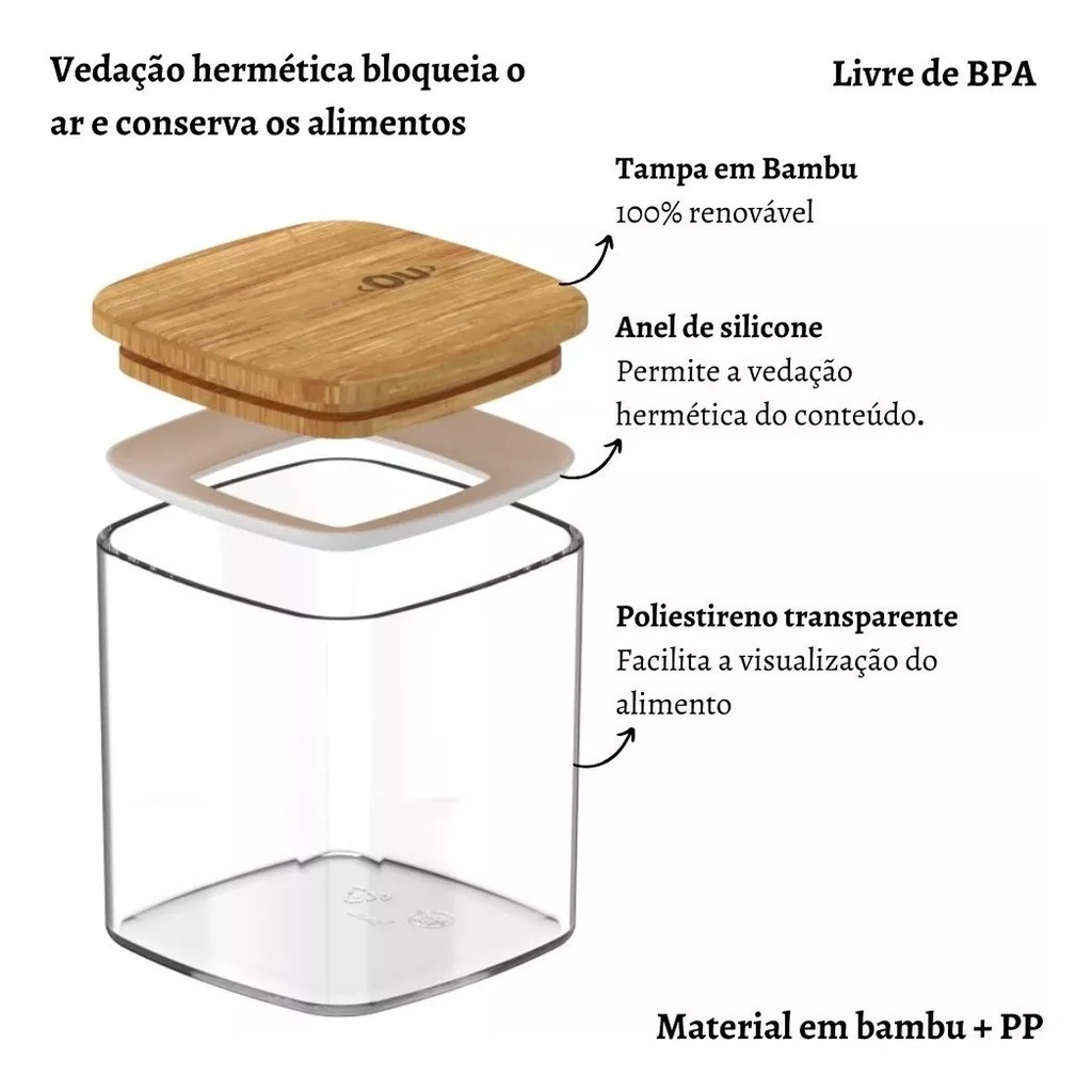 kit 8 potes Bambu hérmeticos keep 150ml OU cozinha Tempero organizador Grão