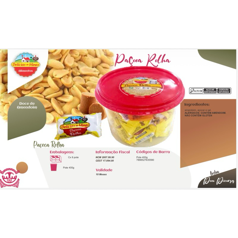 Kit 8 potes Paçocas Rolha 400g Delícias De Minas - Ideal para Hotéis, Pousadas e Lanches Escolares Produto de excelente qualidade, sabor caseiro e preço acessível. Perfeito para revenda, cafés, padarias, pousadas, hotéis, escolas e lanches do dia a dia. Você receberá: 8 Potes de 400 gramas. Destaques do produto: Sabor artesanal Embalagem prática e segura Ideal para lanches, café da manhã e merendas escolares Ótimo custo-benefício para revenda e atacado