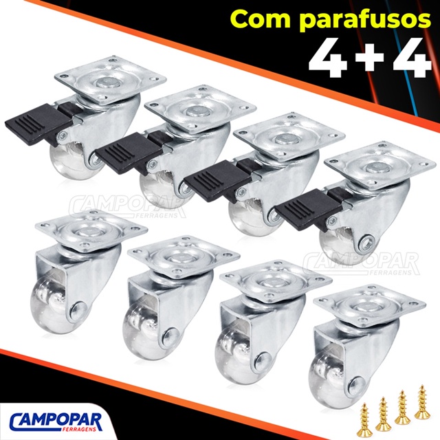 | Kit 8 Rodízios Rodinhas Para Móveis 35mm 4 Com Trava E 4 Sem Trava este produto | R$ 51,21 | 27% | 4.9/5 | 9 |
