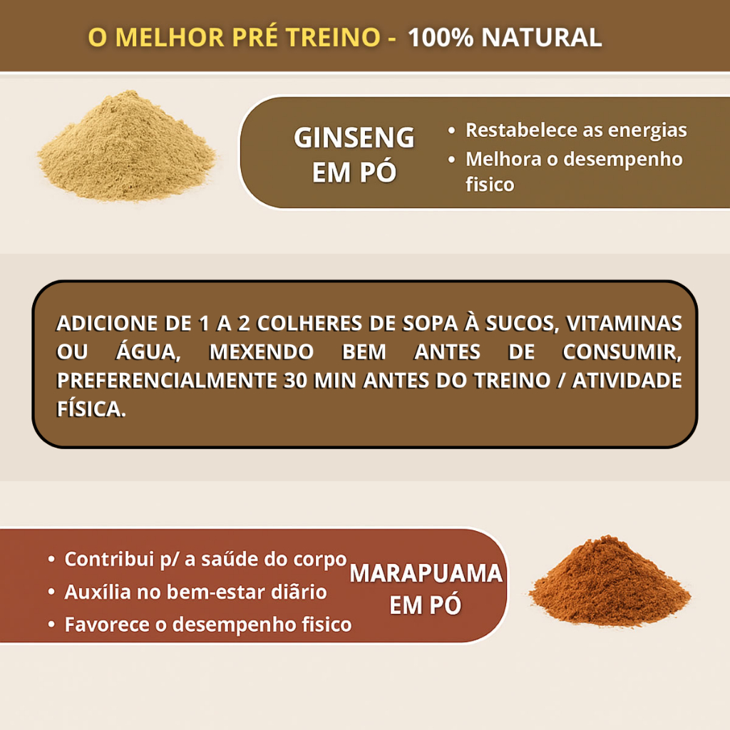 Kit 8 Super Energéticos Naturais Em Pó Pré Treino Guaraná Gengibre Catuaba Marapuama Ginseng