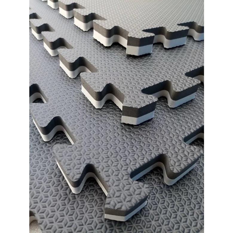Kit 8 Tatames Tapetes EVA Dupla Face Preto e Cinza 50x50x3cm 30mm Linha Premium com Bordas