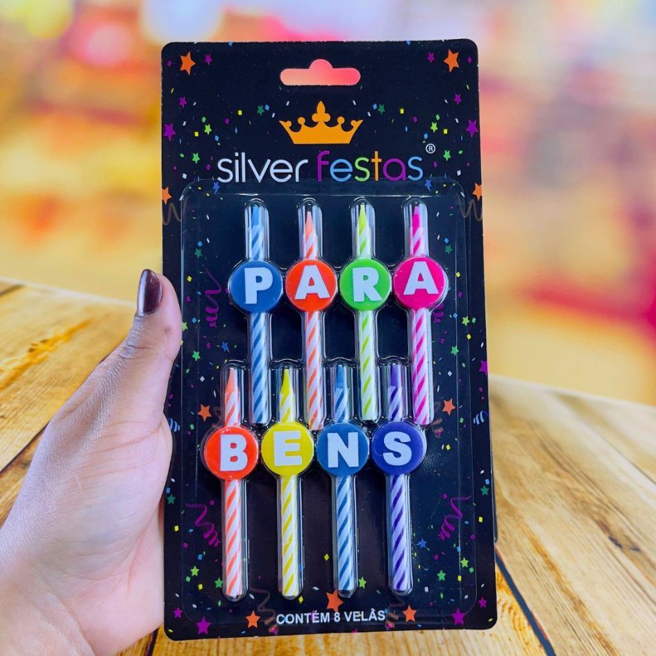 KIT 8 VELAS PARABENS PALIITO COLORIDOS (SILVER FESTA)