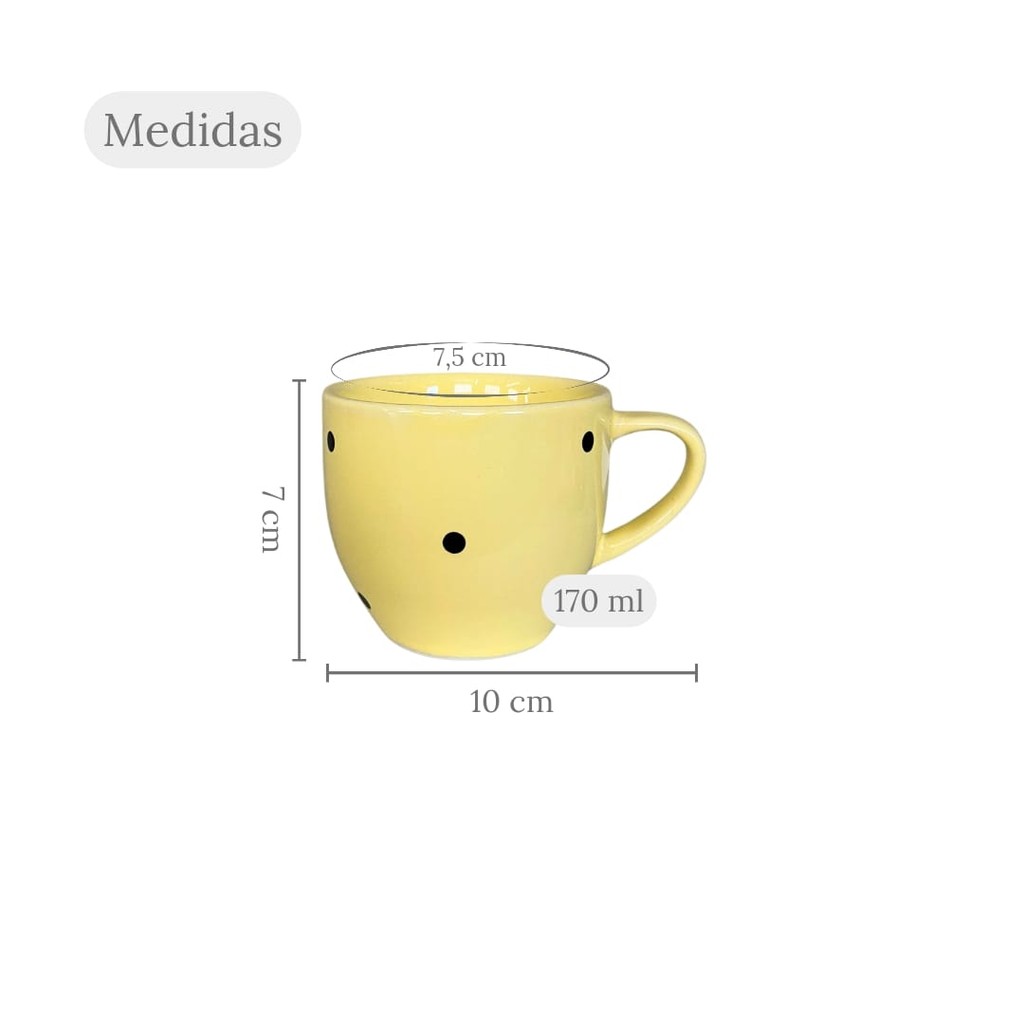 Kit 8 Xícaras Paris Amarela Decoradas Bolinhas Poá 170 Ml