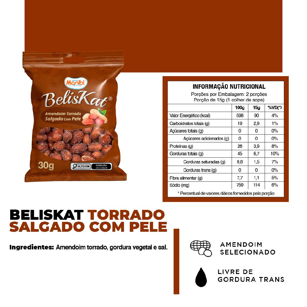 Kit 80x Amendoim Beliskat Salgado Com Pele 30g - Caixa com 2,4kg