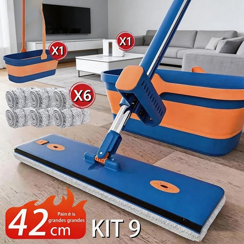 DIMENSÕES: - Esfregão: 130cm (altura) x 42cm (largura da cabeça) - Balde: 52x45cm (desmontado) → 6cm (dobrado) CONTEÚDO DO KIT: - 1x Esfregão profissional - 1x Balde com raspador automático - 1x Suporte organizador - 6x Refis de microfibra (azul) POR QUE ESCOLHER? - Economiza tempo - Limpeza 3x mais rápida - Higiênico - Sem contato com água suja - Perfeito para: Apartamentos, pets, escritórios Se você busca mais praticidade na Limpeza de sua casa o Mop Kit De Limpeza é a opção ideal! Ele vai substituir a vassoura, o rodo e o pano de chão na hora da limpeza. O Balde FLAT MOP pode ser usado em qualquer lugar, em portas, janelas, móveis, escadas sem se preocupar com riscos ou manchas. Graças a seu refil de microfibra que absorve a água e a sujeira muito mais rápido e com muito mais facilidade, possui MOP giratório 360° super eficiente permitindo alcançar os lugares mais difíceis. Possuí o Inovador sistema de vazão de água individual (separando a água suja da agua limpa) assim quando finalizar é só abrir a rolha do reservatório para dispensar a agua suja! Muito mais prático! DESTAQUES PRINCIPAIS: - Sistema Tudo-em-1 - Balde dobrável + esfregão + 6 panos de reposição - Tecnologia Hands-Free - Raspador integrado (não precisa torcer com as mãos) - Microfibra Premium - Remove 99% da sujeira (seco/úmido) - Compacto e Portátil - Balde reduz para apenas 6cm de altura - Alcance Ampliado - Cabo de 130cm (evita dores nas costas) Característica do Característica do Característica: 1.A almofada lavável apresenta função extra absorvente para remover o excesso de água sem estrias, secagem rápida para proteger os pisos de madeira. 2.O esfregão de piso plano de lavagem de substituição é lavável e reutilizável, mais ecológico, não mais desperdiça mais 3.Com conjunto de asa auto limpador, mantenha a máquina de lavar longe das almofadas sujas, que querem desperdiçar água em uma pequena carga apenas para lavá-las? 4.Facilidade de limpeza de qualquer superfície: pisos laminados, pisos de madeira duro, azulejo, viny, baseboards, paredes e tetos. 5.Nunca se preocupe com os derramamentos, ou animais esportivos, diga adeus a todas as bagunças deslumbrantes: As mãos ficam livres de tocar na água e almofadas sujas. ⚠️ OBSERVAÇÕES: - Cores podem variar levemente devido à iluminação - Dimensões aproximadas (variação de 1-2cm) #mop#limpeza#kitlimpeza#esfregão#moplazymop#limpezafácil#mop360#balderaspador#limpezaseca#limpezamolhada#mopmaoslivres#p