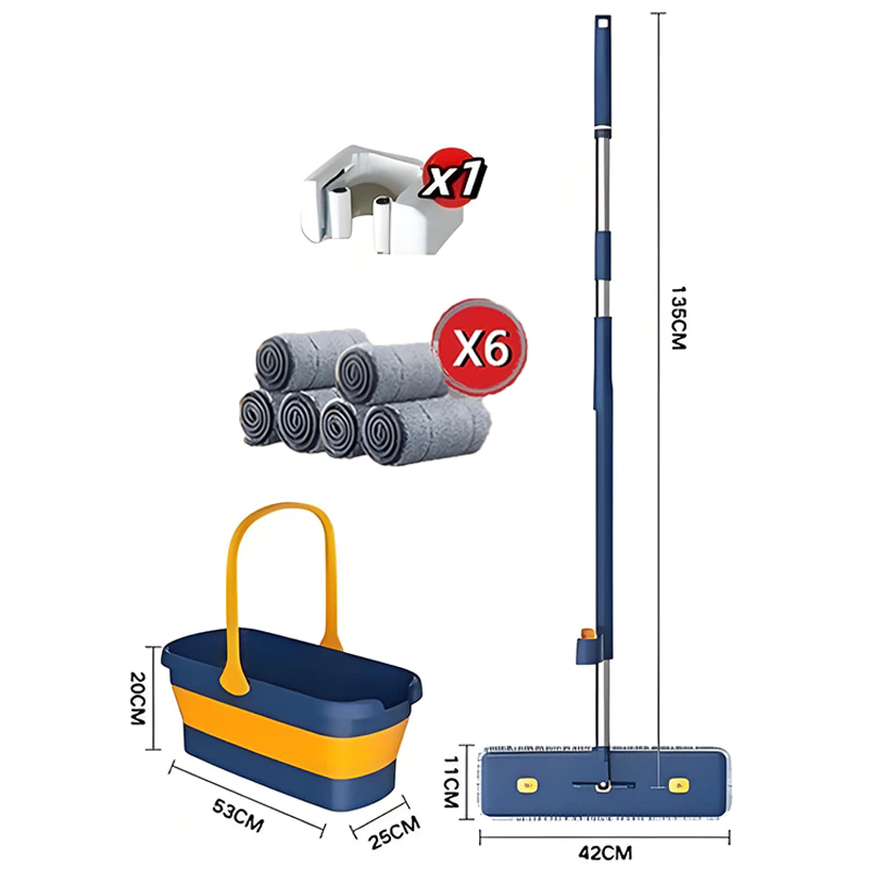 KIT 9 Esfregões Milagrosos Limpa Seco e Úmido sem Enxague Balde com Raspador Dobrável e Super Absorvente
