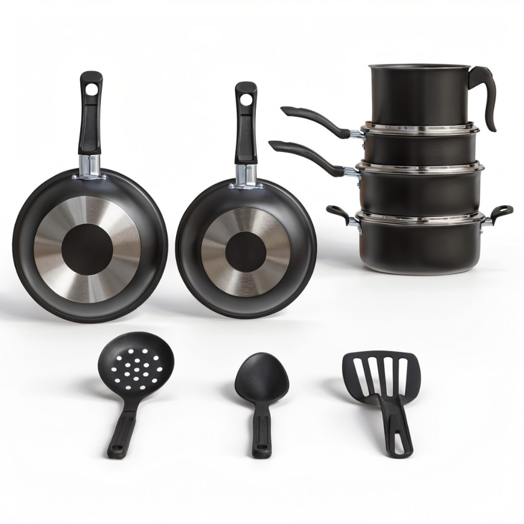 | Kit 9 Pecas Panelas De Aluminio Anti Aderente Preto Tampa De Vidro ... este produto | R$ 167,90 | 16% | 4.8/5 | 10 |