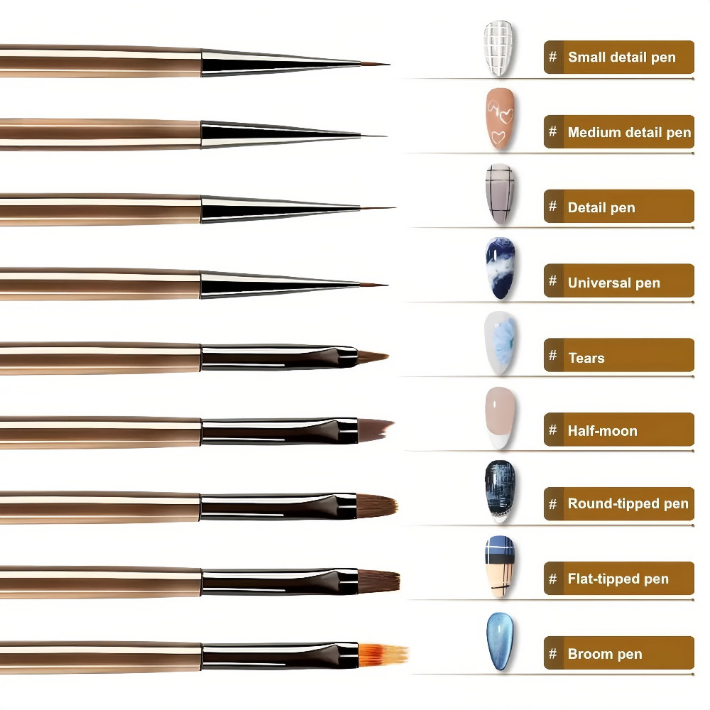 Kit 9 Pincéis Para Arte De Unhas Conjunto De Ferramentas Desenho De Polimento De Gel