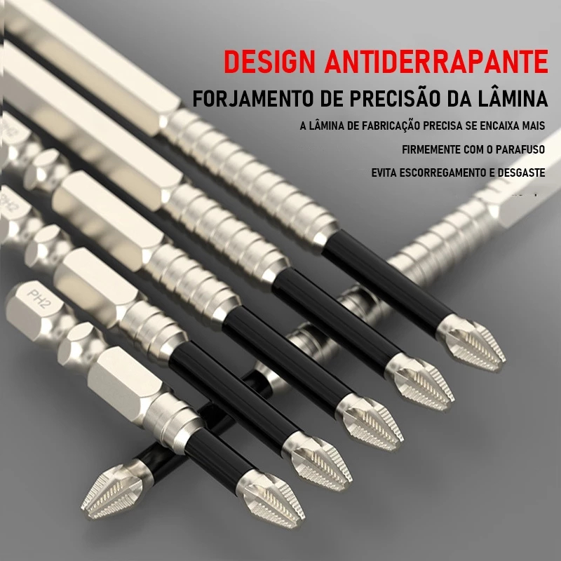 Kit 9 Pontas Phillips PH2 Magnéticas em Liga S2 para Parafusadeira de Impacto