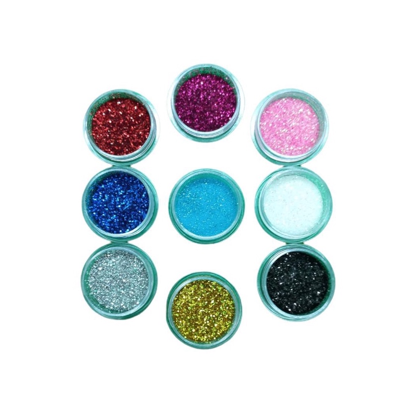 kit 9 Potinhos de Glitter Flocado Extra Fino 2 Gramas + Brilho / Varias Cores