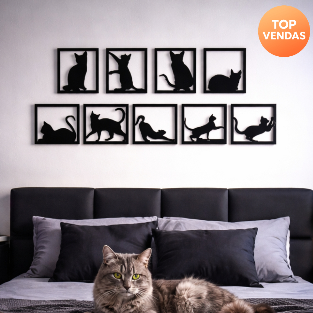 Kit 9 Quadros De parede Decorativo Gatinhos Fofos de Cabeceira mdf 3m