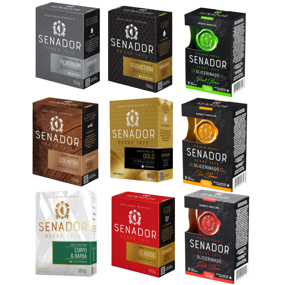 Kit 9 Sabonete Senador Mix Todos Tipos 130g Mix Fragrâncias