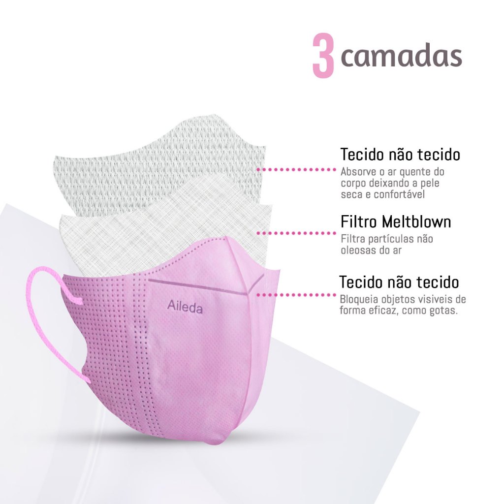 Kit 90 Máscaras Descartáveis 3D Proteção Camada Respiratória A Máscara 3D conta com ajustes faciais reforçados, 2 elásticos para colocação e clip nasal , o que faz ela se adaptar melhor ao rosto, sem machucar. A principal função dessa máscara é impedir a passagem de partículas, bactérias e vapores tóxicos e assim, proteger as pessoas que estiverem em contato com os portadores de doenças e os profissionais da saúde durante os procedimentos médicos. Obs: Cada máscara possui embalagem individual.
