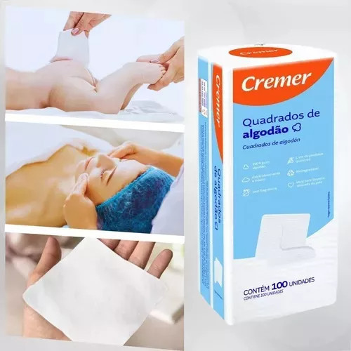 Kit com 9 Unidades – Total 900 Algodões Quadrados Cremer Os Algodões Quadrados para Bebê Cremer são indispensáveis na rotina de cuidados com a pele delicada do seu bebê. Desenvolvidos com algodão 100% puro, eles proporcionam toque suave, alta absorção e total segurança durante a limpeza. Cada quadrado é extremamente macio e hipoalérgico, ideal para: Higienizar o rosto e o corpo Troca de fraldas Limpeza de áreas sensíveis Aplicação de loções e cremes A Cremer é referência em qualidade quando o assunto é cuidado infantil, garantindo um produto confiável, prático e perfeito para o dia a dia das famílias. 📄 Ficha Técnica Tipo: Algodão Quadrado Marca: Cremer Cor: Branco Quantidade: 900 unidades (kit com 9 pacotes) Composição: 100% Algodão Puro Armazenamento: Manter em local fresco, seco e protegido da luz direta