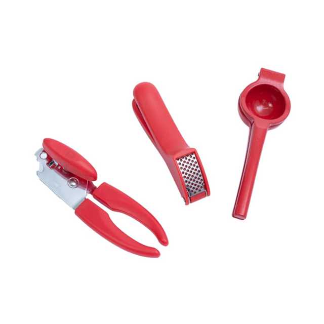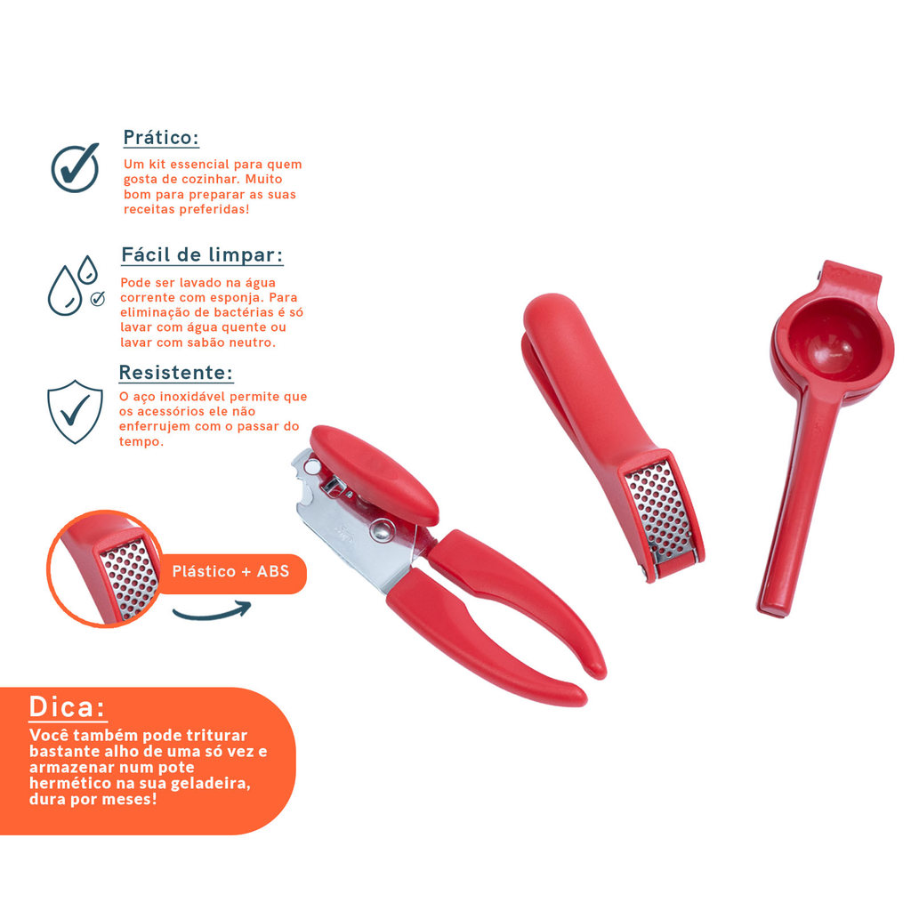 Kit Abridor de Lata Espremedor Alho E Limão Vermelho – Oikos