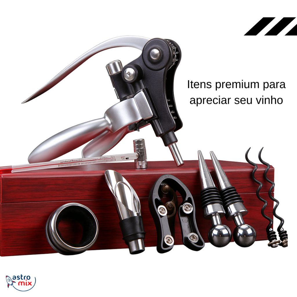 | Kit Abridor De Vinho Saca Rolhas Maleta Sommelier 9 Pçs este produto | R$ 179,99 | 11% | 4.9/5 | 11 |
