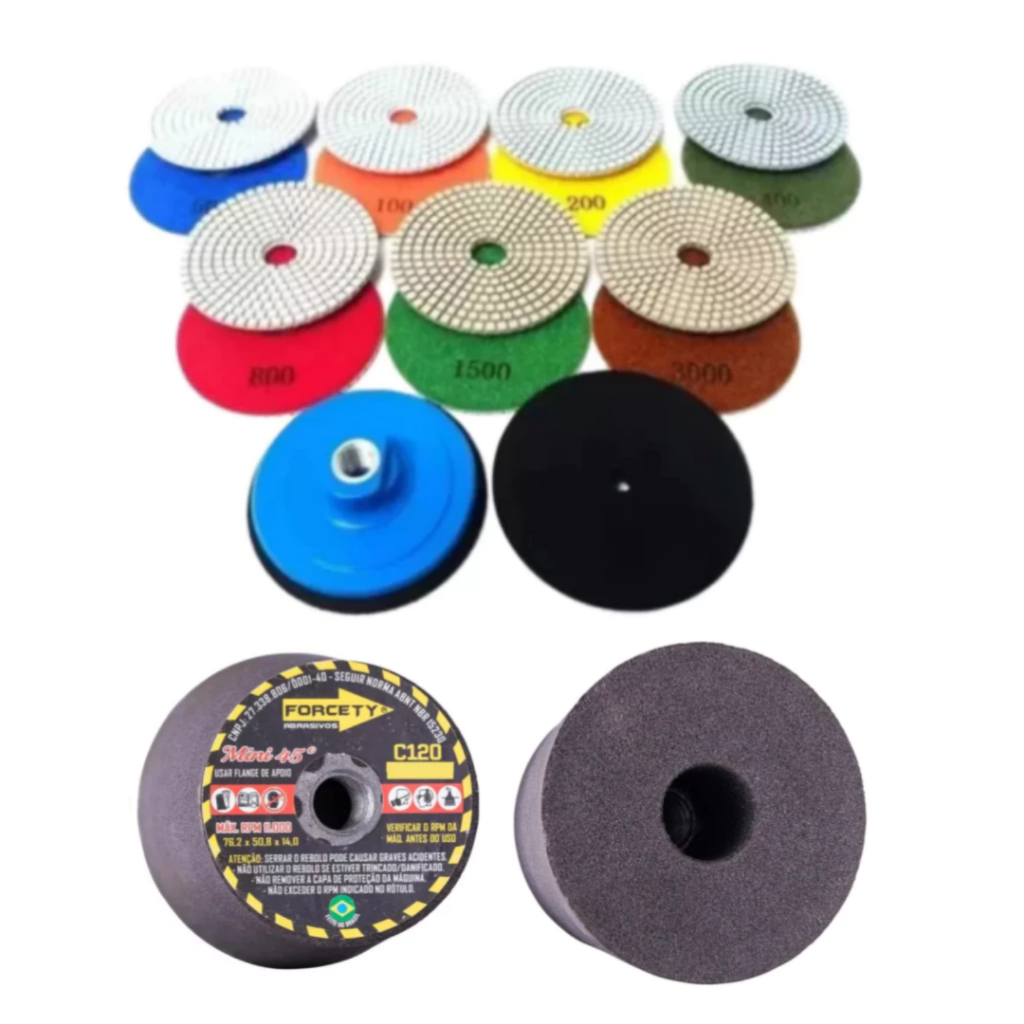 | Kit Acabamento Porcelanato 45º Graus Lixa 200 + 1Suporte + 1Rebolo ... este produto | R$ 52,33 | — | 4.8/5 | — |