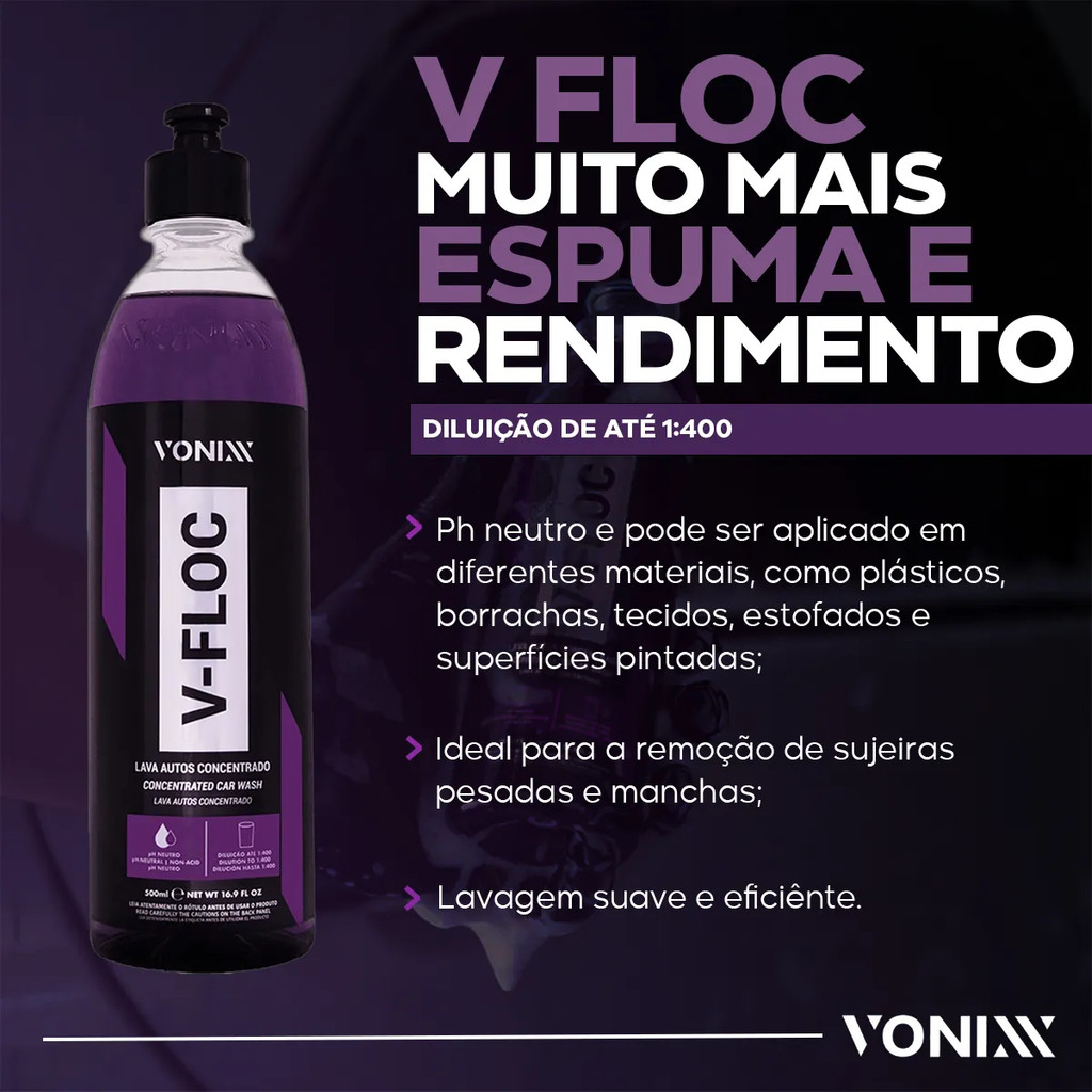 Kit Acabamento Shampoo Vonixx V-Floc E Cera Carnaúba Tok Final + Pulverizador Foam Speed Clean Kers