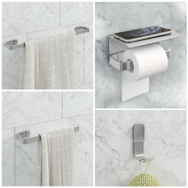 Kit De Acessórios Para Banheiro Polido 4 Peças Linha Stander CONTEM NO KIT 1 PORTA PAPEL HIGIENICO COM SUPORTE CELULAR Stander 1 PORTA TOALHA DE BANHO Stander 1 PORTA TOALHA DE ROSTO Stander 1 CABIDEIRO Stander KIT DE PARAFUSOS, BUCHA DE FIXAÇÃO, MANUAL DE INSTALAÇÃO FABRICADO EM ALUMÍNIO MACIÇO POLIDO DE 4 mm DE ESPESSURA COM 16 mm LARGURA CANOPLAS DE ACABAMENTO EM INOX NÃO ENFERRUJA, NÃO DESCASCA NÃO SOFRE AÇÃO DE MARESIA