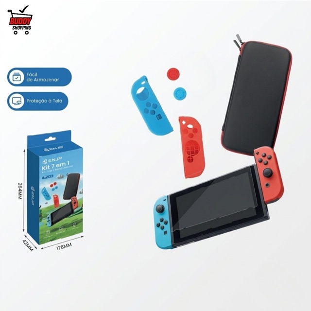 Kit Acessórios Nintendo Switch 7 em 1 Case Rígida 2 Películas Vidro 2 Capas Silicone e 2 Grips Joycon KNUP aparece na subcategoria Acessórios de Consoles (de Jogos e Consoles) na Shopee Brasil por R$ 49,99 (69% de desconto sobre o preço original de R$ 161,26).