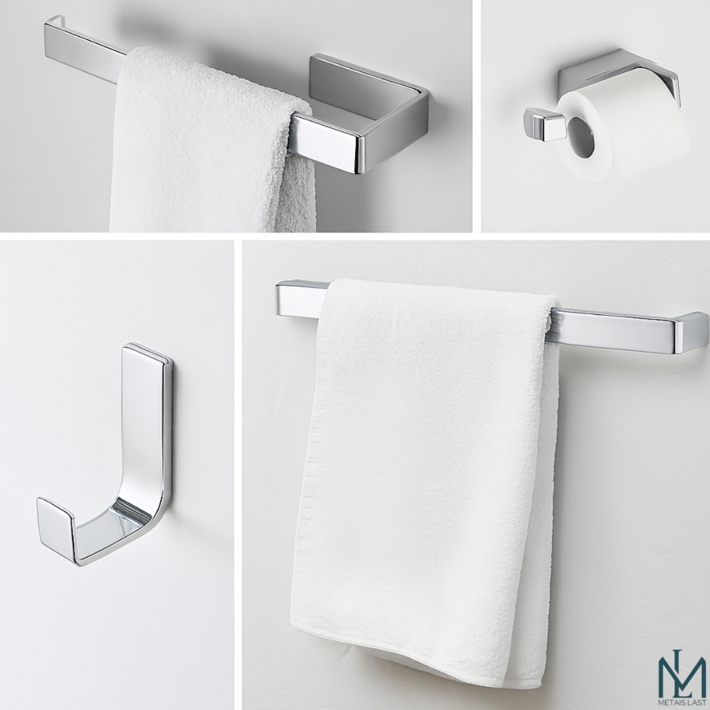 Este kit de acessórios para banheiro é perfeito para quem busca praticidade e organização. Com design moderno e acabamento Cromado, ele oferece harmonia e sofisticação ao ambiente, garantindo que todos os itens se integrem ao estilo do seu banheiro ou lavabo. Ideal para otimizar o espaço, especialmente em banheiros menores, o kit oferece funcionalidade sem comprometer o conforto. Cada peça foi projetada para ser resistente e durável, facilitando tanto a organização quanto a limpeza do ambiente. Especificações Técnicas: Material Principal: Alumínio (porta-toalha de banho, porta-toalha de rosto, papeleira e cabide). Acessórios de Fixação: Parafusos Philips: Aço. Buchas de fixação: Nylon. Medidas das Peças: Vide imagem do produto. Conteúdo do Kit: 01 Porta-shampoo reto vidro 01 Porta-toalha de banho (Alumínio). 01 Porta-toalha de rosto (Alumínio). 01 Papeleira (Alumínio). 01 Cabide (Alumínio). 08 Parafusos Philips (Aço). 08 Buchas de fixação (Nylon). 05 Chapinhas de acabamento (Inox). Diferenciais: Acabamento superior, o melhor do mercado. Produtos altamente resistentes e duráveis. Preço imbatível direto de fábrica. Envio mais rápido do Brasil. Recomendações de Uso: Para a limpeza, utilize um pano macio com sabão neutro. Evite o uso de fita dupla face na fixação dos produtos. Contrate um profissional para realizar a instalação. Não utilize produtos abrasivos, como alcalinos, ácidos ou solventes, para evitar danos às peças.