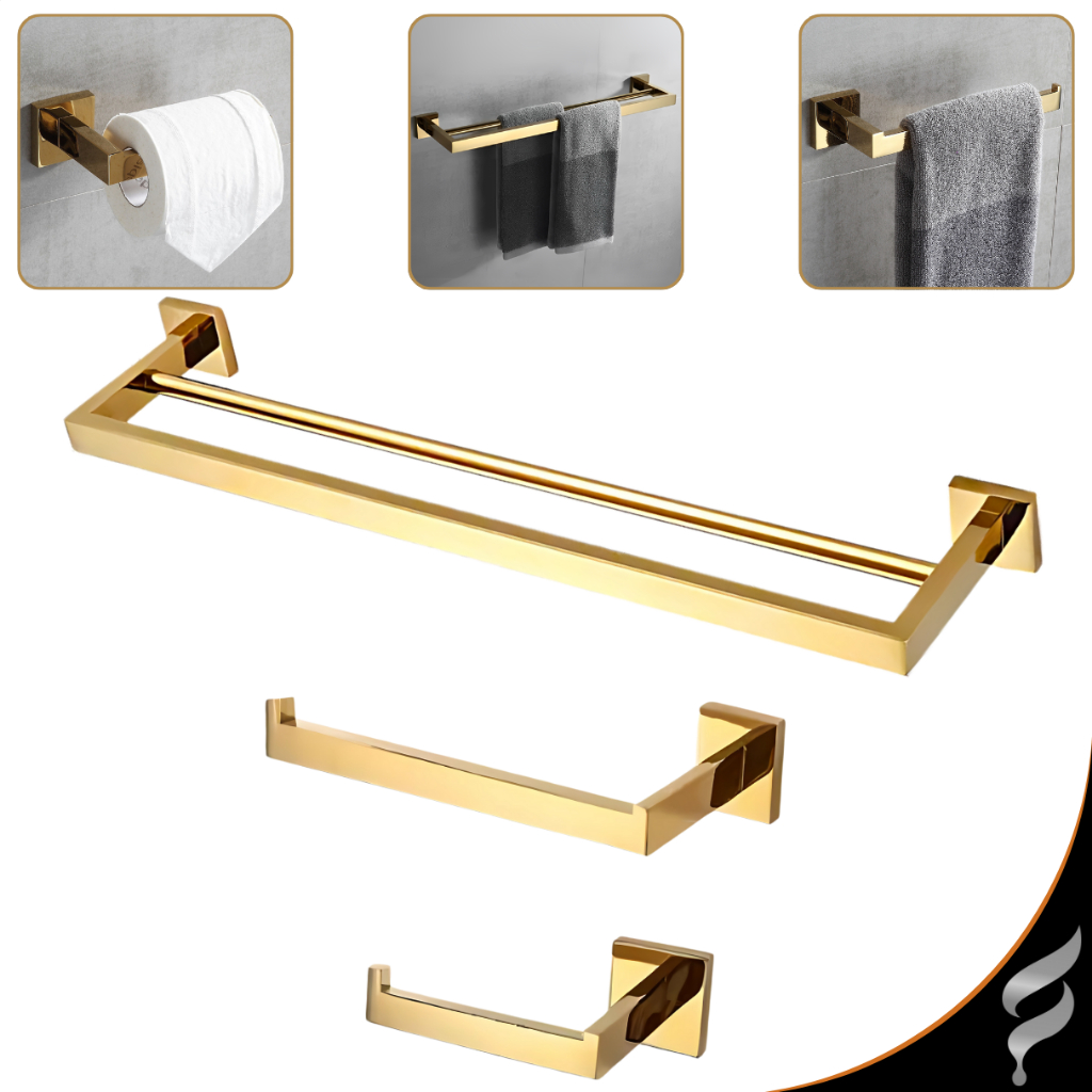 O Kit Acessórios Inox para Banheiro 3 Peças é uma solução elegante e funcional para aprimorar a decoração e a utilidade do seu banheiro. Este conjunto é composto por três peças essenciais, todas fabricadas em aço inoxidável e revestidas em um elegante tom dourado, proporcionando um toque de sofisticação ao ambiente. Além do design moderno e atraente, a durabilidade do aço inoxidável garante resistência à corrosão, mantendo a qualidade e o brilho por um longo período. Composto por Um porta toalha de banho duplo, um porta toalha de rosto, uma papeleira e todo o kit completo de instalação, este conjunto proporciona um excelente custo-benefício, garantindo uma aparência impecável livre de manchas e arranhões durante anos, reduzindo custos e tempo com manutenção. --------------------------------------------------------------------- Principais Características: -Material em Aço Inox resistente: Confere durabilidade, resistência à corrosão, manchas e ferrugem em ambientes úmidos. -Design quadrado refinado: Peças com linhas retas e acabamento minimalista que valorizam a decoração do banheiro. -Fácil instalação: Acompanha todos os acessórios necessários, permitindo montagem prática e rápida. --------------------------------------------------------------------- Informações Técnicas: -Material: Aço Inox; -Cor: Dourado Brilhante, Cromado, Preto Fosco, Rose Gold; -Instalação: Parede; -Utilização: Banheiro; -Linha: Luxo Quadrado; -Tipo de Fixação: Dupla com Parafusos; -Medidas: Especificadas nas fotos. --------------------------------------------------------------------- Itens Inclusos: -01 Porta toalha de banho duplo; -01 Porta toalha de rosto; -01 Papeleira; - Acompanha também: Parafusos e Buchas Para Instalação. --------------------------------------------------------------------- TAGS: kit acessórios banheiro inox, kit banheiro dourado luxo, porta toalha inox parede, kit banheiro 3 peças inox, kit acessórios banheiro moderno, porta papel higiênico inox, acessórios banheiro quadrado, kit banho inox dourado, suporte toalha banheiro luxo, papeleira inox dourada, conjunto para banheiro elegante, acessórios inox resistente ferrugem, kit banheiro fixação parafuso, conjunto porta toalha e papeleira, acessórios banheiro dourado escovado, kit banheiro cromado inox, kit banheiro preto fosco, acessórios banheiro rose gold, kit luxo para lavabo, suporte toalha de banho e rosto, conjunto banheiro aço inox.