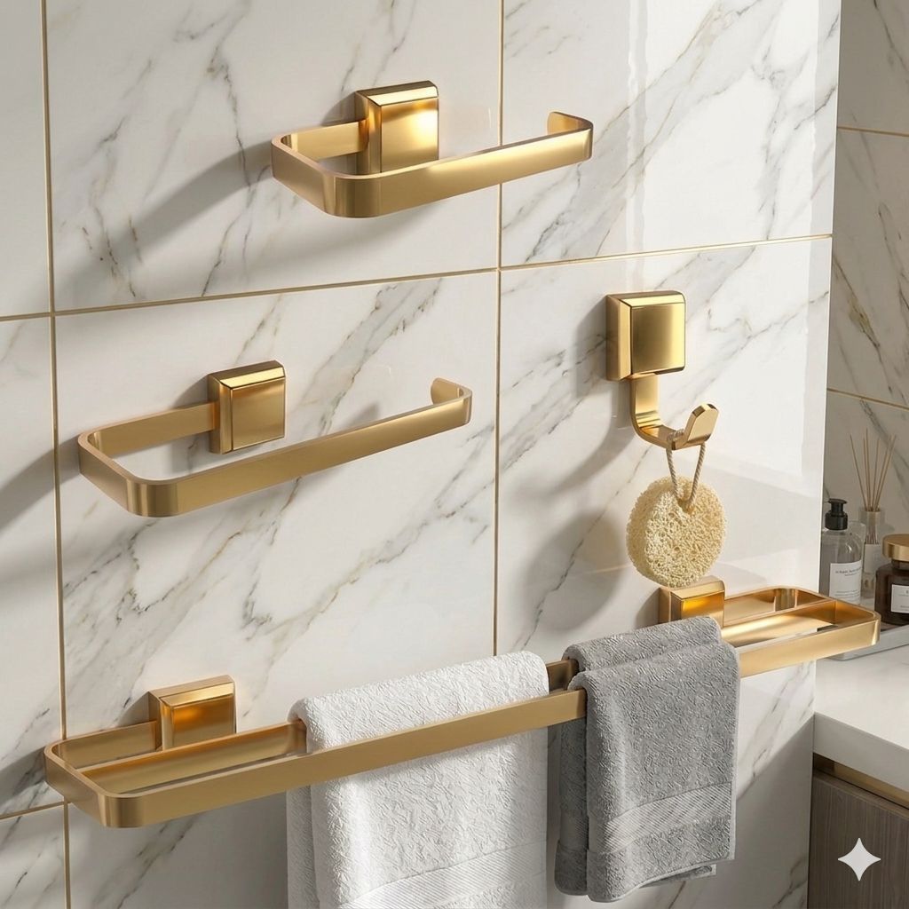 Catalogado na subcategoria Banheiros (de Casa e Construção), Kit Acessórios Para Banheiro Dourado Toalheiro Duplo Gold está à venda na Shopee Brasil por R$ 165,35 (6% de desconto sobre o preço original de R$ 175,90). Nota 4.8 de 5 na Shopee e 105 unidades vendidas, este produto se destaca pelo excelente custo-benefício.