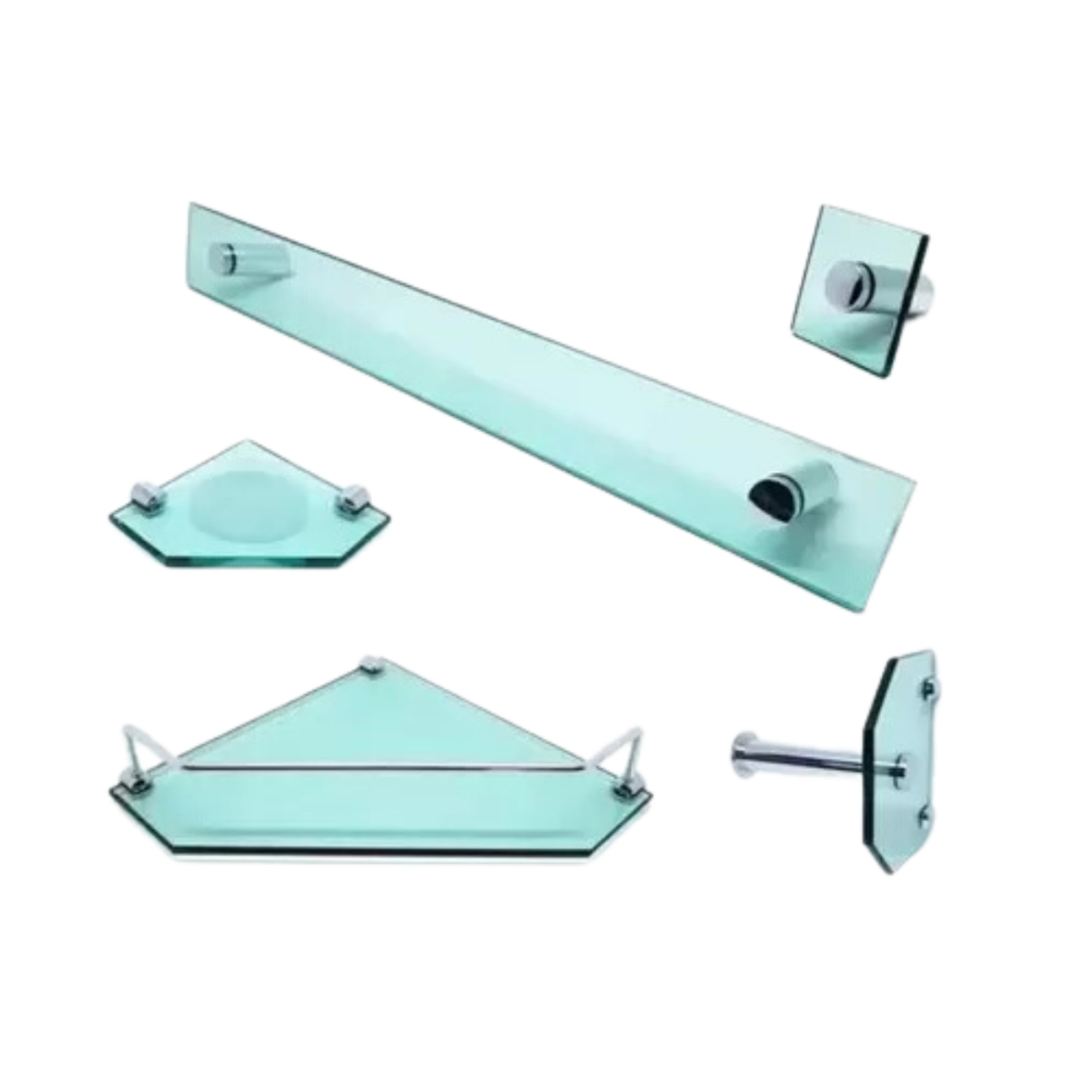 Kit Acessórios Para Banheiro e Lavabo Luxo em Vidro Porta Itens 5 Peças Modelo CantO