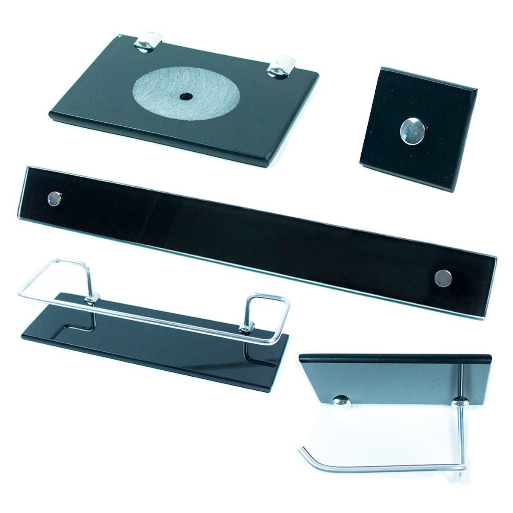 Kit Acessórios Para Banheiro em Vidro 05 peças Reto PRETO