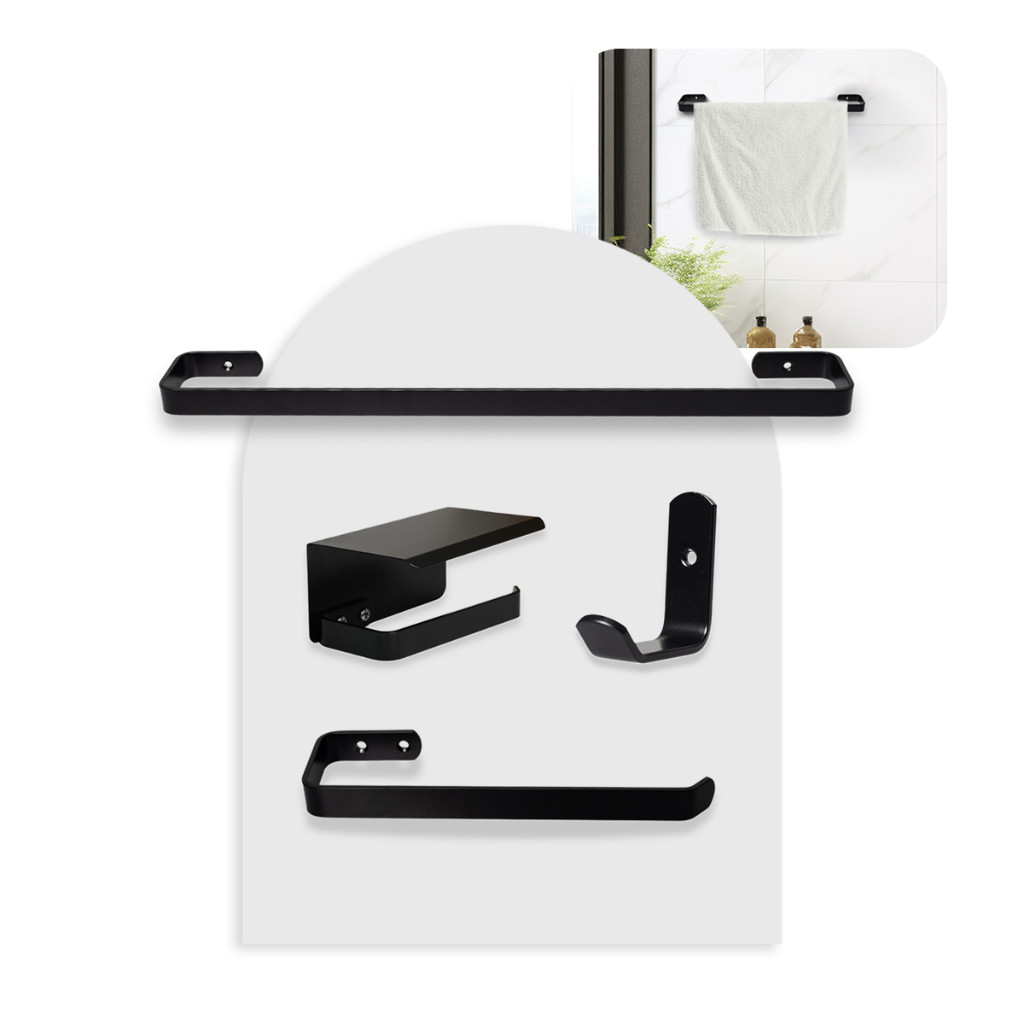 Kit Acessórios para Banheiro Preto Fosco 4 Peças em Alumínio | Moderno e Resistente