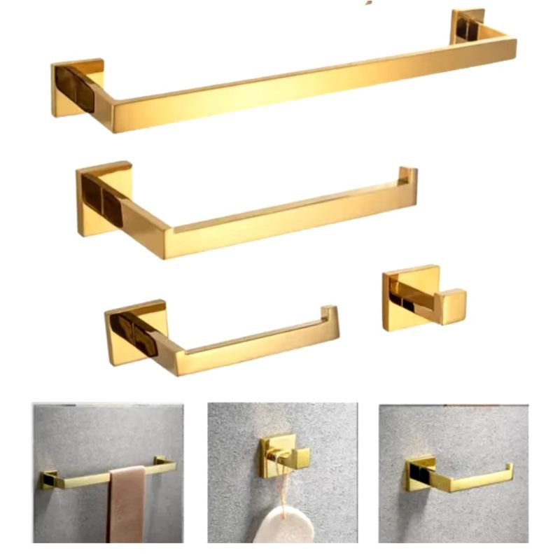 KIT ACESSÓRIOS QUADRADO PARA BANHEIRO METAL INOXIDAVEL 4 PECAS
