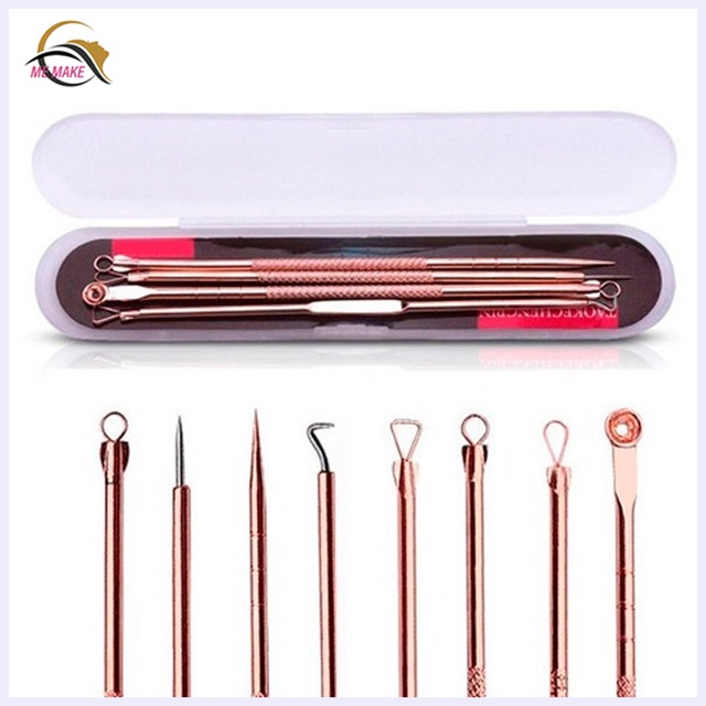 Kit Acne Espinha Extrator De Cravos Profissional Removedor 4 Pçs de Ponta Dupla com Pinça/Extrator/Agulha para Salão