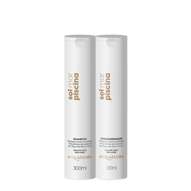 Kit Acquaflora Sol Mar Piscina Duo (2 produtos) Este Kit Contém Acquaflora Sol Mar Piscina - Shampoo 300ml: limpa, protege e restaura os fios das agressões solares. Sua fórmula enriquecida com água de coco, sais minerais e silicones, promove ação condicionante e auxilia na remoção de resíduos acumulados nos fios. Acquaflora Sol Mar Piscina - Condicionador 300ml: desembaraça, condiciona e protege a fibra capilar das agressões causadas pela água do mar, sol e cloro da piscina. Enriquecido com água de coco, os fios ficam super macios, revitalizados e com aspecto saudável. Conselho de Aplicação Shampoo: aplique o shampoo sobre o cabelo úmido e massageie suavemente até obter uma espuma cremosa. Em seguida, enxágue abundantemente. Se necessário, repita a operação. Condicionador: com o cabelo limpo e úmido, aplique o condicionador por todo o comprimento dos fios. Massageie por alguns minutos e enxágue.