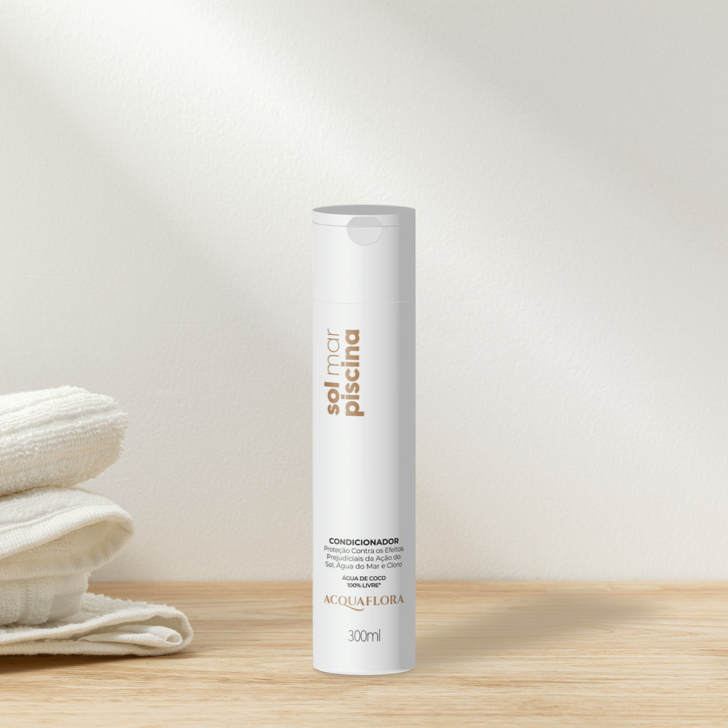 Kit Acquaflora Sol Mar Piscina Home Care Leave-in (4 produtos) Este Kit Contém Acquaflora Sol Mar Piscina - Shampoo 300ml: limpa, protege e restaura os fios das agressões solares. Sua fórmula enriquecida com água de coco, sais minerais e silicones, promove ação condicionante e auxilia na remoção de resíduos acumulados nos fios. Acquaflora Sol Mar Piscina - Condicionador 300ml: desembaraça, condiciona e protege a fibra capilar das agressões causadas pela água do mar, sol e cloro da piscina. Enriquecido com água de coco, os fios ficam super macios, revitalizados e com aspecto saudável. Acquaflora Sol Mar Piscina - Máscara Capilar 250g: hidrata, restaura e nutre profundamente as fibras capilares que sofreram agressões solares. Devolve a vitalidade para os fios, proporcionando maciez, brilho e proteção contra radiações solares. Acquaflora Sol Mar Piscina Fluído Protetor - Leave-in 120ml: para cabelos expostos ao sol, sal e cloro. Com filtro solar FPS15, textura fluída e fórmula enriquecida com água de coco, camomila e cúrcuma, cuida da fibra capilar, devolvendo brilho e maciez aos fios. Conselho de Aplicação Shampoo: aplique o shampoo sobre o cabelo úmido e massageie suavemente até obter uma espuma cremosa. Em seguida, enxágue abundantemente. Se necessário, repita a operação. Condicionador: com o cabelo limpo e úmido, aplique o condicionador por todo o comprimento dos fios. Massageie por alguns minutos e enxágue. Máscara: aplique o produto no cabelo limpo e úmido, massageando do comprimento às pontas. Deixe agir por cerca de 5 minutos e enxágue. Leave-in: aplique o protetor nos cabelos úmidos ou secos durante exposição ao sol, mar ou piscina. Para um melhor resultado, reaplique a cada mergulho.