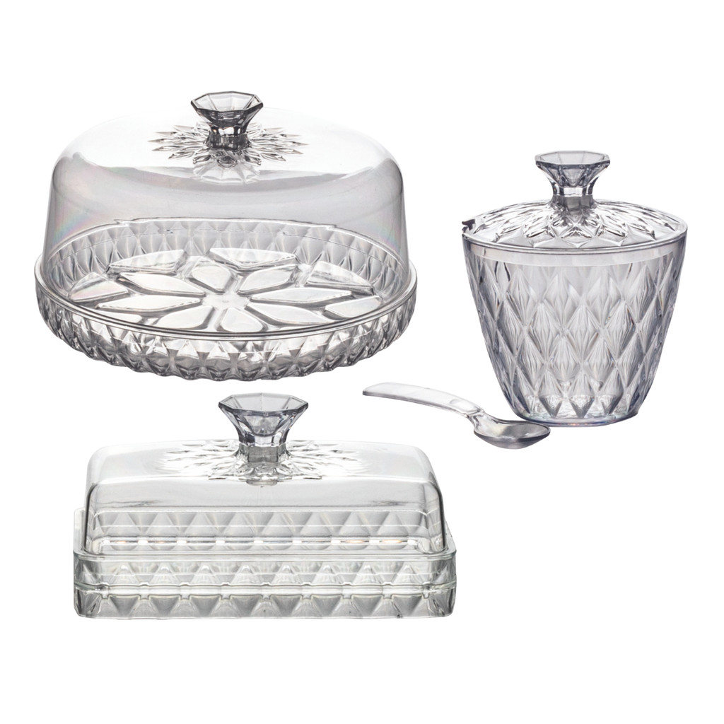 Kit Açucareiro Queijeira Manteigueira Mesa Posta 3 Peças Plasútil Presente de Natal