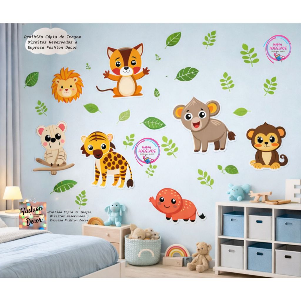 Kit Adesivo de Animais Parede Quarto Decoração Infantil Baby - Papel de Parede Safari Menino Menina