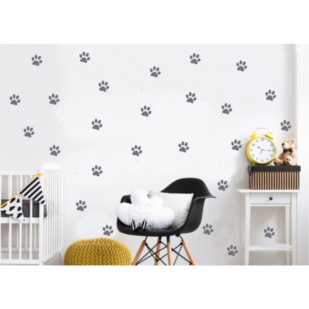 Deixe seu pet e o ambiente mais feliz Kit de adesivos de patinhas gato cachorro pet para decoração de paredes , quarto infantil, cantinho do pet ou qualquer superfície lisa. Kit com 30 unidades tamanho 3,5cm Não possui contorno, o que deixa o adesivo mais realista 😃 Feito com adesivo de qualidade profissional Lavável e de fácil aplicação Disponível em várias cores