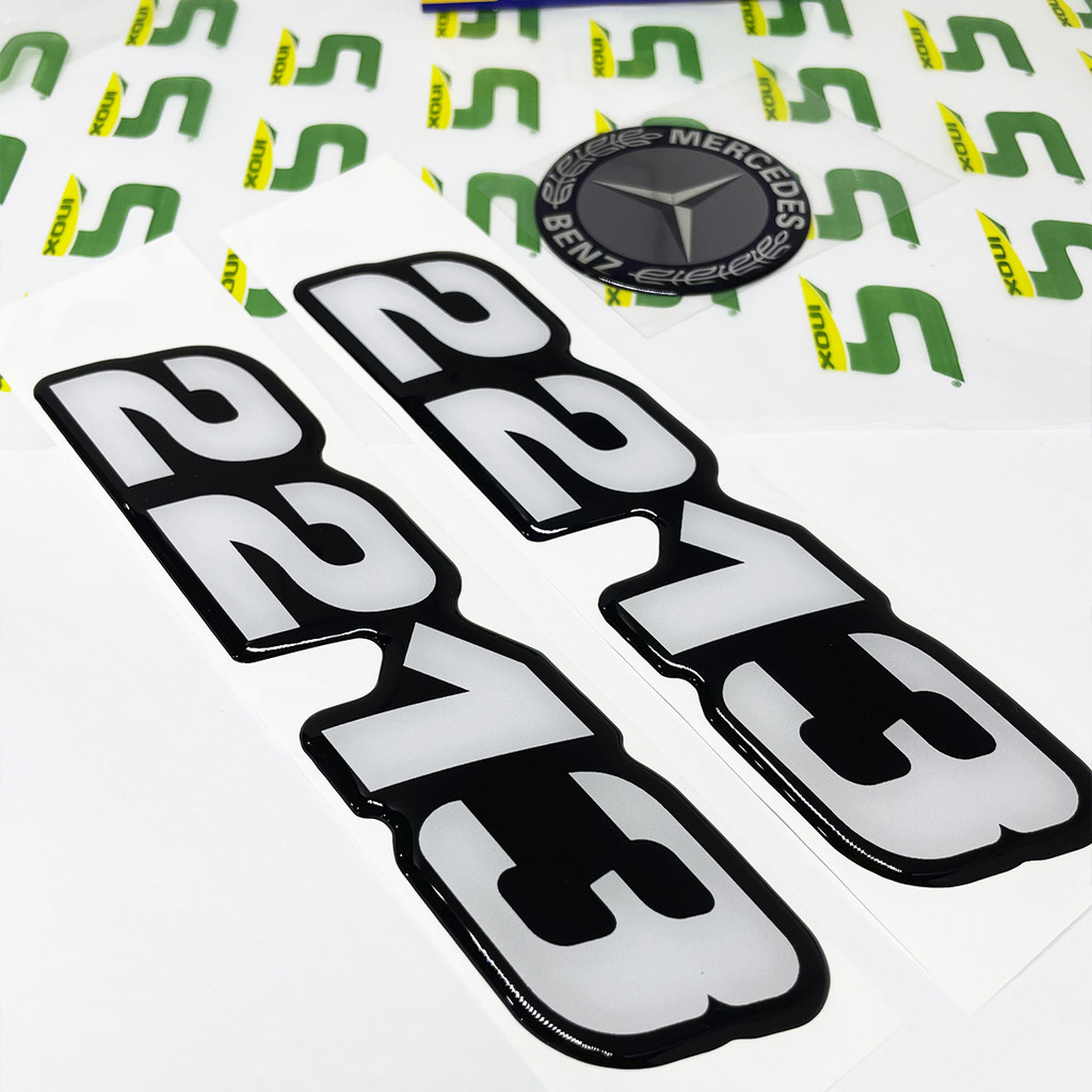 IMAGENS PUBLICADAS MERAMENTE ILUSTRATIVAS Os emblemas automotivos que comercializamos, são compatíveis com cada modelo de veículo, personalizam e protegem a pintura. Os adesivos são produzidos em poliéster automotivo autocolante importado, dispensando a utilização de produtos para a fixação. Kit Adesivos 2213 Lateral + Logo MB Frontal Compatível Com Mercedes Benz 2213 Antigo Emblema Lateral Resinado - GenéricoItens Inclusos:2 Adesivos 2213 / Fabricado em Vinil Branco / Dimensões: 20 x 4,5 cm1 Adesivo Mercedes Benz / Fabricado em Poliéster Cromado / Dimensões: 6,9 cmObservações:Material autocolante.Resistente à chuva e raios UV.Embalagem segura para o transporte.Vinil importado. Instruções Para Aplicação:1 - Limpe e remova qualquer impureza na área de aplicação do produto.2 - Limpe as mãos e remova o protetor do liner.Procure ter o mínimo de contato com a face adesiva.3 - Centralize o produto no local da aplicação. Após esse posicionamento,pressione o produto gradativamente, sempre do centro para as bordas.Procure retirar todas as bolhas.4 - Após finalizar a instalação, não tente retirar a peça para reposicioná-la,pois isso danificará o produto. OBS: Para limpeza e conservação do produto, utilize apenas água e sabão neutro e/ou automotivo.Recomendamos que a aplicação seja feita por um profissional.