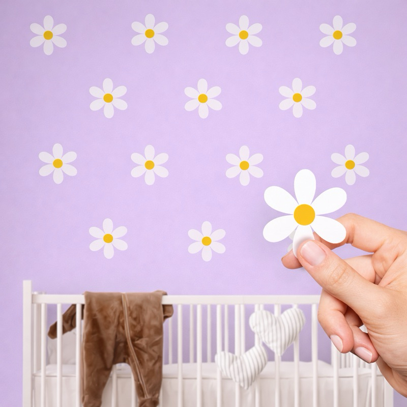 Adesivos de Parede – Coleção Margaridas 🌼 Transforme sua parede com delicadeza e charme! Nosso kit de adesivos de margaridas é perfeito para decorar quartos, salas, cozinhas e trazer um toque de natureza para qualquer ambiente. Produzidos em vinil de alta qualidade, são fáceis de aplicar e têm acabamento fosco sofisticado. ✨ Kits: margaridas de 10 cm margaridas de 7 cm margaridas de 4 cm * Escolha o tamanho na hora da compra, só irá um tamanho por pacote. 🖤 Detalhes do Produto: Produzido em vinil auto-adesivo (já vem com cola) Impressão fotográfica de alta definição Acabamento fosco com tecnologia europeia Recorte eletrônico de alta precisão Tinta ecologicamente correta e sem cheiro 🖌 Aplicação: Fácil de aplicar – é só destacar e colar! Ideal para paredes lisas, portas, móveis, vidros, geladeiras, azulejos e até o teto Para pintura recente, aguarde no mínimo 15 dias antes de aplicar Evite superfícies úmidas, com infiltrações, bolhas na pintura ou rachaduras 📦 Prazo de Produção: Até 5 dias úteis (para pedidos personalizados o prazo pode ser maior). 📌 Atenção: A imagem demonstrativa pode não estar em escala exata, servindo apenas para ilustrar o tamanho e a distribuição das peças. 💡 Dica: Combine com outros modelos da coleção e crie composições criativas na sua decoração!