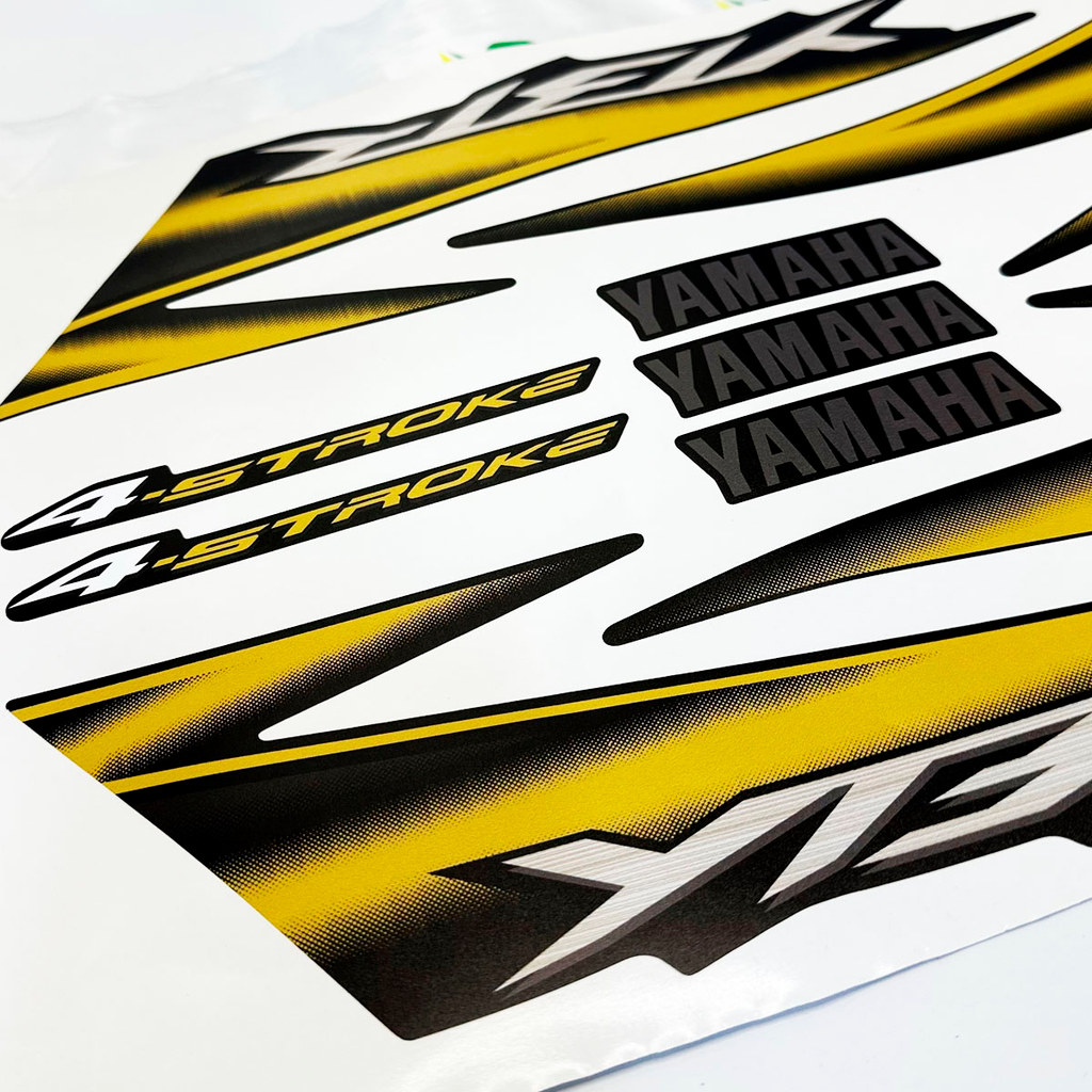 Adesivo Genérico. Os adesivos para motos, além de determinar, em muitos casos, o modelo da moto, também personalizam e protegem a pintura. Os adesivos são produzidos em vinil automotivo autocolante importado, dispensando a utilização de produtos para a fixação. Sua impressão é feita em maquina UV, com essa tecnologia as faixas estão protegidas por mais tempo da ação do tempo (Exposição ao sol e a chuva), dando mais durabilidade e dispensando a necessidade de verniz no final da aplicação. Kit Adesivos Para Yamaha YBR 125 2006 Moto Preta + Emblemas ResinadosItens Inclusos:2 Adesivos (4-Stroke) / Fabricado em Vinil Branco / Dimensões: 14,2 x 1,4 cm3 Adesivos (Yamaha) / Fabricado em Vinil Branco / Dimensões: 8,5 x 2,3 cm2 Adesivos (Ybr) / Fabricado em Vinil Branco / Dimensões: 31,4 x 9,6 cm2 Adesivos / Fabricado em Vinil Branco / Dimensões: 31,5 x 9,2 cm2 Logos Resinados / Fabricado em Poliéster Escovado / Dimensões: 45 mm Observações:Material autocolante.Resistente à chuva e raios UV.Embalagem segura para o transporte.Vinil importado. Instruções Para Aplicação:1 - Limpe e remova qualquer impureza na área de aplicação do produto.2 - Limpe as mãos e remova o protetor do liner.Procure ter o mínimo de contato com a face adesiva.3 - Centralize o produto no local da aplicação. Após esse posicionamento,pressione o produto gradativamente, sempre do centro para as bordas.Procure retirar todas as bolhas.4 - Após finalizar a instalação, não tente retirar a peça para reposicioná-la,pois isso danificará o produto. OBS: Para limpeza e conservação do produto, utilize apenas água e sabão neutro e/ou automotivo. Recomendamos que a aplicação seja feita por um profissional.Garantia de 1 ano.