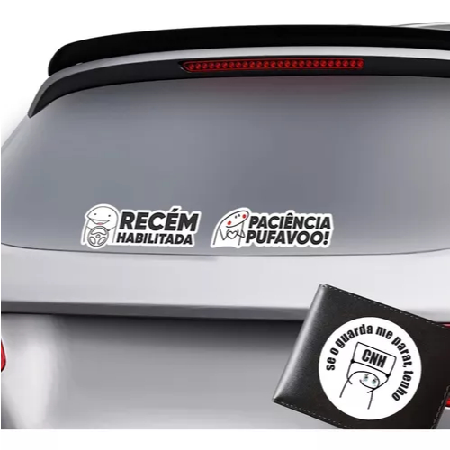 Kit Adesivos Recém Habilitada Paciência Meme Flork Automotivo Carro Externo