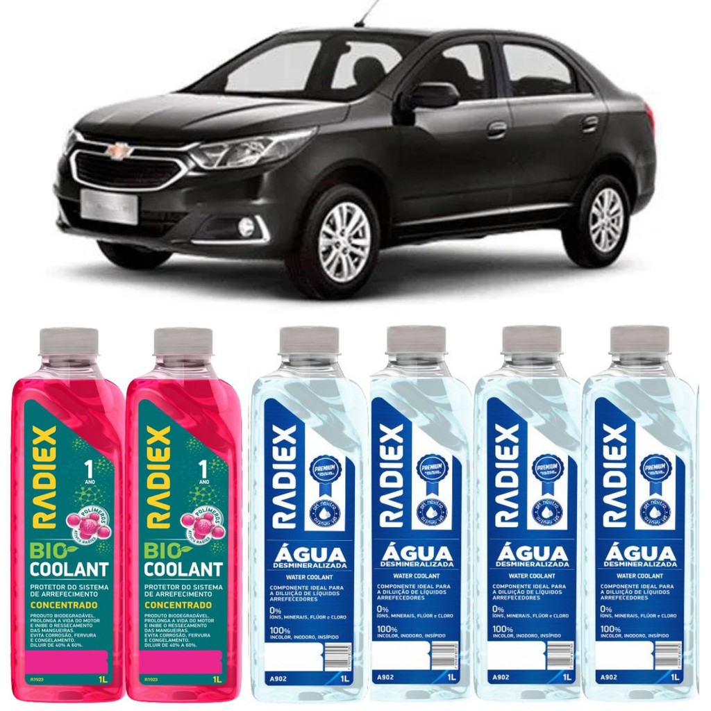 SKU: 64705979/ NUM.PEÇA: R1923 SKU: 64700330/ NUM.PEÇA: A902 VALOR REFERENTE Á: 2 Litros Kit Aditivo Radiador Rosa R1923- RADIEX 4 Agua Desmineralizada A902 - Radiex INFORMAÇÕES Bio Coolant Concentrado Rosa R1923 Concentração e proteção na medida certa O aditivo R1923 é um composto químico desenvolvido com polímeros semissintéticos de alta performance térmica. Contém inibidores de corrosão na proporção adequada para proteger todos os metais do sistema de arrefecimento, prolongando a vida útil das peças e oferecendo excelente proteção contra corrosão e cavitação em todos os componentes do sistema. Diluição de 40% a 60% 1 ano no sistema Biodegradável Eleva o ponto de ebulição em até 120°C Modo e recomendações de uso: Antes de colocar o Protetor R1923 no radiador, execute a limpeza completa no sistema de arrefecimento com água pura. Em caso de excesso de sujeira, recomenda-se a aplicação do Limpa Radiador Radiex R-9301. Dilua o R1923 na proporção de 40% a 60% da capacidade do sistema, e aplique a solução no reservatório de água ou no radiador, conforme o caso, até completar o nível indicado no reservatório. Ex.: para um sistema com capacidade total de 5 Litros, utilize 2 Litros do Protetor R1923 e 3 Litros de água (recomendamos a diluição com Água Desmineralizada Radiex A902). Efetue a substituição do produto no sistema a cada 1 ano. ATENÇÃO: Não utilize o produto puro no sistema e não misture com outros fluídos ou soluções. Disponível nas embalagens de 1, 5, 20, 50 e 200 Litros.