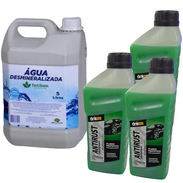 KIT AGUA DESMINERALIZADA 5 LITROS E 3 LITROS ADITIVO PARA RADIADOR CONCENTRADO